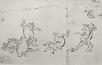 Эмакимоно «Тёдзюгига» — «Весёлые картинки из жизни животных» — необычен в своём роде: он не содержит текста, только изображения. Эти свитки датируются XII и XIV веками.