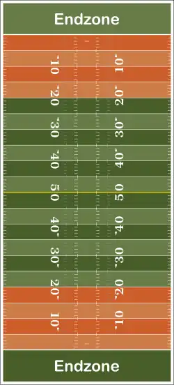 Зачётная зона была изобретена после того, как пас вперёд был разрешён, до этого игроку для тачдауна надо было коснуться линии в конце поля. В начале истории, пас (или пант) из поле в зачётную зону, или пас (и пант) из зачётной зоны в поле, считался нарушением. Если это пас из зачётной зоны, это считалось сейфти. В итоге, если команды находилась на своей 1-ярдовой линии, это почти всегда приводило к сейфти. В конце концов, был достигнут компромисс: 12 ярдов конечной зоны были добавлены к каждому концу поля, но взамен игровое поле было сокращено с 110 ярдов до 100, в результате чего физический размер поля был лишь немного длиннее, чем раньше. Первоначальные ворота для филд гола находились на линиях между полем и энд-зоной, но после того, как они начали мешать игре, они вернулись к дальним границам энд-зоны в 1927 году. В 1933 году Национальная футбольная лига снова переместила стойки ворот в начало, а затем снова вернула в конец в 1974 году.