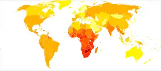 Африка к югу от Сахары остаётся наиболее затронутым регионом: здесь проживает 67 % всех людей, живущих с ВИЧ, и зарегистрирован 91 % всех новых случаев инфекции среди детей. В результате эпидемии более 14 миллионов детей в Африке к югу от Сахары стали сиротами[7]. Эпидемия ВИЧ-инфекции привела к резкому снижению средней продолжительности жизни во многих африканских странах (например, в Ботсване с 65 до 35 лет к 2006 году)[8].