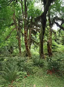 Эпифитные мхи во влажном умеренном лесу (запад США)