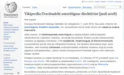 4 июля 2018 года эстонский раздел присоединился к протестам против планируемого принятия Европарламентом т. н. «Директивы об авторском праве на едином цифровом рынке» (англ. Directive on Copyright in the Digital Single Market)[1]. Посетители раздела не могли просматривать никакие статьи или обсуждения, и перенаправлялись на страницу с текстом заявления, поддерживающего протест против ужесточения копирайтных ограничений в интернете и призывающего присоединиться к акции.