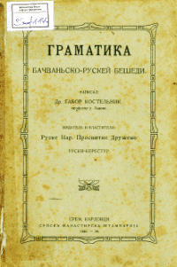 • Костельник, Габор. Граматика бачваньско-рускей бешеди. — Руски Керестур : РНПД, 1923.