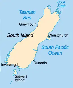 Когда Великобритания аннексировала Новую Зеландию в 1840 году, Южный остров ненадолго вошёл в состав колонии Новый Южный Уэльс[12]. Эта аннексия была ответом на попытки Франции основать колонию на Южном острове в Акароа[13] и Новозеландской компании в Веллингтоне, и поэтому генерал-губернатор Уильям Хобсон провозгласил британский суверенитет над всей Новой Зеландией 21 мая 1840.