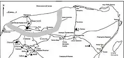 Археологическая карта северного Юкатана с указанием важнейших городов древних майя по работе Брюса Роджерса[5]