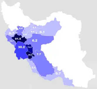 | 25 | Лурестан | 5 281 человек | 0,3 % | 1 760 649 человек (2016 г.) |