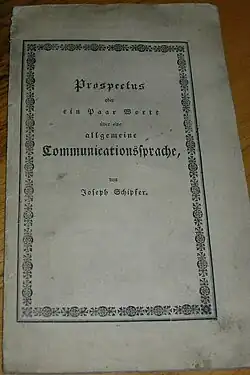 - Joseph Schipfer. Versuch einer Grammatik für eine Allgemeine Communications- oder Weltsprache, Wiesbaden 1839