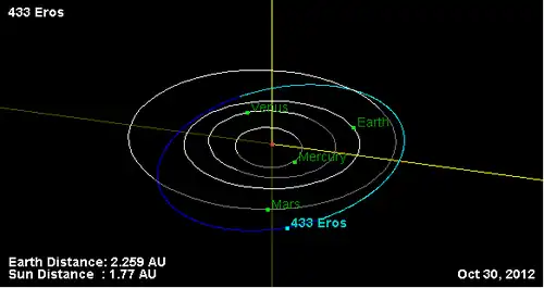 - ↑ AstDys (433) Eros Ephemerides for 2012. Department of Mathematics, University of Pisa, Italy. Дата обращения: 27 июня 2010. Архивировано из оригинала 31 мая 2012 года.