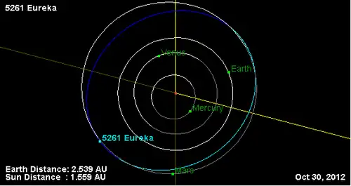 (5261) Эврика (лат. Eureka) — небольшой троянский астероид Марса, расположенный в марсианской точке Лагранжа L5, движущийся по орбите в 60° позади планеты. Колебания расстояния достигают 0,3 а. е., при чём сам диапазон колебаний периодически смещается, например, в 1850 году диапазон колебаний лежал в промежутке от 1,5 а. е. до 1,8 а. е., в 2400 году он будет лежать в промежутке от 1,3 а. е. до 1,6 а. е. Он стал первым обнаруженным троянским астероидом Марса[2].