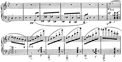 Далее снова звучат шестнадцатые ноты, но уже в ре мажоре, при этом в басу играется такой же ритм, как и в первых двух разделах. Произведение заканчивается тремя тихими аккордами в ре миноре.