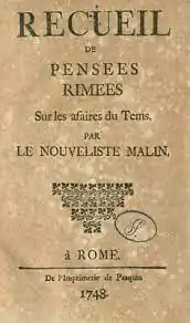 «RECUEIL DE PENSÉES RIMÉES». Nouveliste Malin. 1748