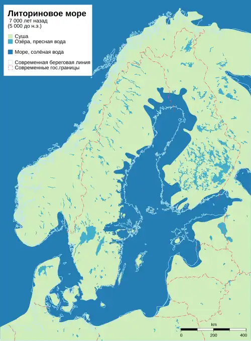 Около 5500—5000 годов до н. э. на месте Балтийского моря образовалось послеледниковое Литориновое море.