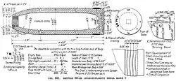 - ↑ 8 фунтов лиддита или аммотола. В Treatise on Ammunition 10-го издания 1915 г. приводится 8 фунтов лиддита. Hogg & Thurston издания 1972 г. приводит 4 фунта лиддита и 6 фунтов аммотола, но 4 фунта лиддита, вероятно, опечатка, поскольку при снаряжении аммотолом заряд, как правило, гораздо легче, чем при снаряжении лиддитом. Позже 6 фунтов аммотола.