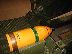Химические снаряды были введены в 1918 году, они были заполнены горчичным газом, стойким химическим агентом. Однако их было выпущено всего лишь 7000 снарядов.[16]