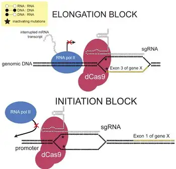 Соединив инактивированную молекулу dCas9, которая связывает ДНК, но не расщепляет её, с нуклеазой FokI, удаётся получить нуклеазы и рестриктазы для высокоселективного разрезания ДНК[23][24][25]. Разработан также способ избирательного эпигенетического перепрограммирования активности генов с помощью инактивированной молекулы dCas9, соединённой с ферментом, осуществляющим деметилирование ДНК[26]. Причём такое перепрограммирование эпигенома можно проводить даже in vivo[27][28]. Позднее выяснилось, что если укоротить управляющую РНК до 14-15 нуклеотидов, то молекула Cas9 теряет способность разрезать ДНК[29][30]. Используя это свойство удалось создать систему для избирательной активации определённых генов in vivo и проверить её эффективность путём лечения мышей со смоделированными заболеваниями[31]. У этого метода есть только одна проблема: обычно система CRISPR загружается в безвредный вирус, называемый аденоассоциированным вирусом (AAV), который переносит систему в клетку. Но весь белок, состоящий из dCas9 и направляющей РНК, слишком велик, чтобы поместиться в один AAV. Чтобы обойти эту проблему, исследователи загрузили dCas9 в один вирус, а управляющую РНК — в другой[31]. Созданы трансгенные линии мышей для направленной регуляции генов in vivo путем редактирования эпигенома с помощью систем dCas9p300 и dCas9KRAB. Эти линии мышей являются удобными инструментами для манипулирования экспрессией генов in vivo с помощью различных направляющих РНК.[32]
