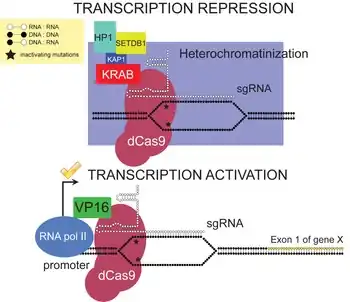 Варианты Cas9, которые связываются с ДНК, но не расщепляют её могут быть использованы для создания искусственных факторов транскрипции для избирательного регулирования транскрипционной активации и репрессии