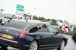Николя Саркози машет из салона президентского Citroën C6 (12 января 2009)