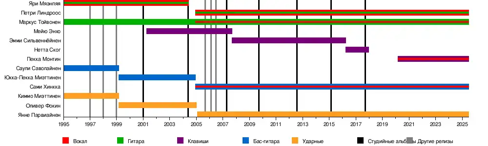 - Маркус Тойвонен — лидер группы, соло и ритм-гитара, чистый и бэк-вокал (1995—настоящее время)