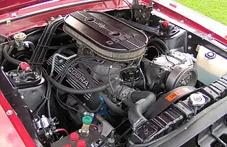 - Версии Shelby Cobra были доступны в кузовах фастбэк и кабриолет и становились всё более роскошными, комплектовались мотором 428 Cobra Jet V8 мощностью 335 л. с.
