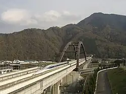 Испытательная трасса JR-Maglev расположена в префектуре Яманаси близ города Кофу в 110 км к западу от Токио (координаты наземной части трассы с мостом Огатаяма: 35°34′55″ с. ш. 138°55′50″ в. д.). Длина трассы составляет 18,6 км, из которых 16 проложены в туннеле. В будущем данный участок должен войти в состав скоростной линии маглева от Токио до Осаки — Тюо-синкансэн.