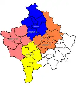 Первоначально группировка KFOR состояла из четырёх многонациональных бригад, каждая из которых имела свой сектор ответственности. В 2005 году эти силы были преобразованы в пять оперативных группировок.