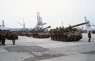 M110A2 Армии США ожидают транспортировки в порту Антверпена, 1984