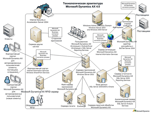 На серверах устанавливаются следующие компоненты Microsoft Dynamics AX: