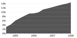 В июле 2005 года, по данным компании Net Applications, накануне выхода первой бета-версии Firefox 1.5 рыночная доля Firefox составляла чуть больше 8 % (Internet Explorer — более 87 %)[68].