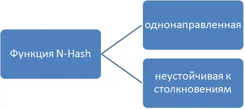 - Теперь для хеш-функций типа N-Hash существует специальное название — ключевые, то есть однонаправленные, но не устойчивые к столкновениям: