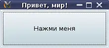 Программа Hello, world! (исходный текст которой приведён выше) создаёт окно с заголовком «Привет, мир!», содержащее кнопку с надписью «Нажми меня». Нажатие приводит к выводу в консоль сообщения «Привет опять — кнопку нажимали!»