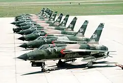 Линейка «Тандерчифов» на авиабазе Тинкер, 1978 год. На переднем плане и предпоследний — двухместные F-105F, остальные самолёты — одноместные F-105D