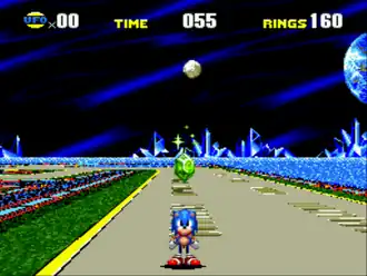 Этап представляет собой трёхмерную плоскую площадку, окружённую водой; его внешний вид зависит от раунда, через который игрок попал на «Special Stage»[22]. Задача игрока — уничтожить шесть НЛО, летающих по всему уровню[13]. После уничтожения некоторых НЛО, игроку даётся бонус в виде колец или увеличения скорости на некоторое время. Каждый этап имеет ограничение во времени, причём, если игрок коснётся воды, то время будет отниматься гораздо быстрее[27]. Каждый раз, когда на таймере останется 20 секунд, на середине этапа появится специальный НЛО голубого цвета, после уничтожения которого на таймер добавятся 30 секунд. В дополнение на этапе присутствуют разнообразные предметы, которые могут помочь или усложнить прохождение уровня[26].