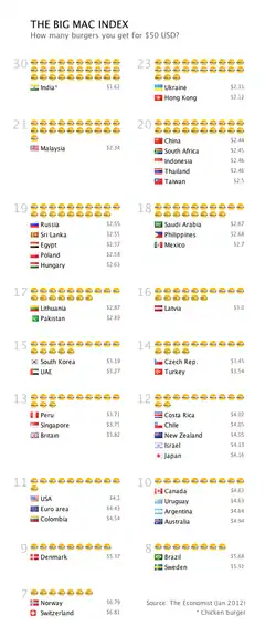 Существует раздел экономической статистики. Таблицы, такие как статистика занятости публикуются каждую неделю. Раздел является уникальным среди британских еженедельников, его рейтинги международной статистики имеют большое значение[35]. Кроме того, The Economist известен своим индексом Биг Мака, который был впервые опубликован в 1986 году. Он использует цену гамбургера в разных странах для измерения покупательной способности валют[36].