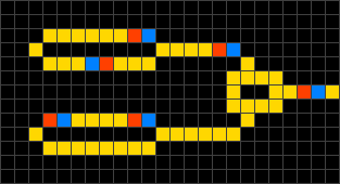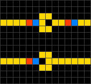 • Проводник → Cигнал при условии, что на соседних клетках есть ровно 1 или 2 Cигнала, иначе остаются проводниками.